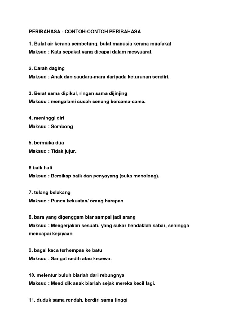 36 Contoh Ayat Simpulan Bahasa Pdf